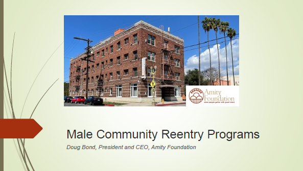 The Board will hear from Doug Bond, President and CEO of the Amity Foundation, regarding its Male Community Reentry Program, offering services such as housing, job training, and therapeutic support for individuals transitioning from incarceration.